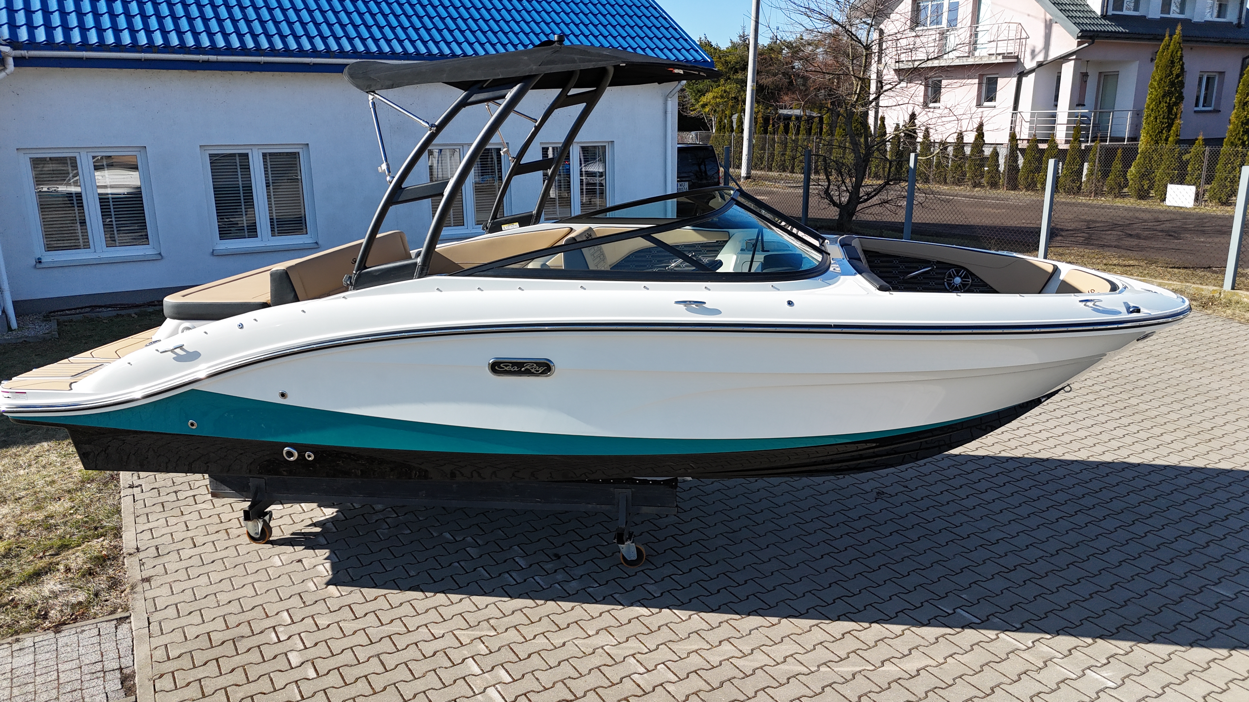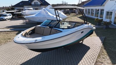Czarna wieża do sportów wodnych z bimini