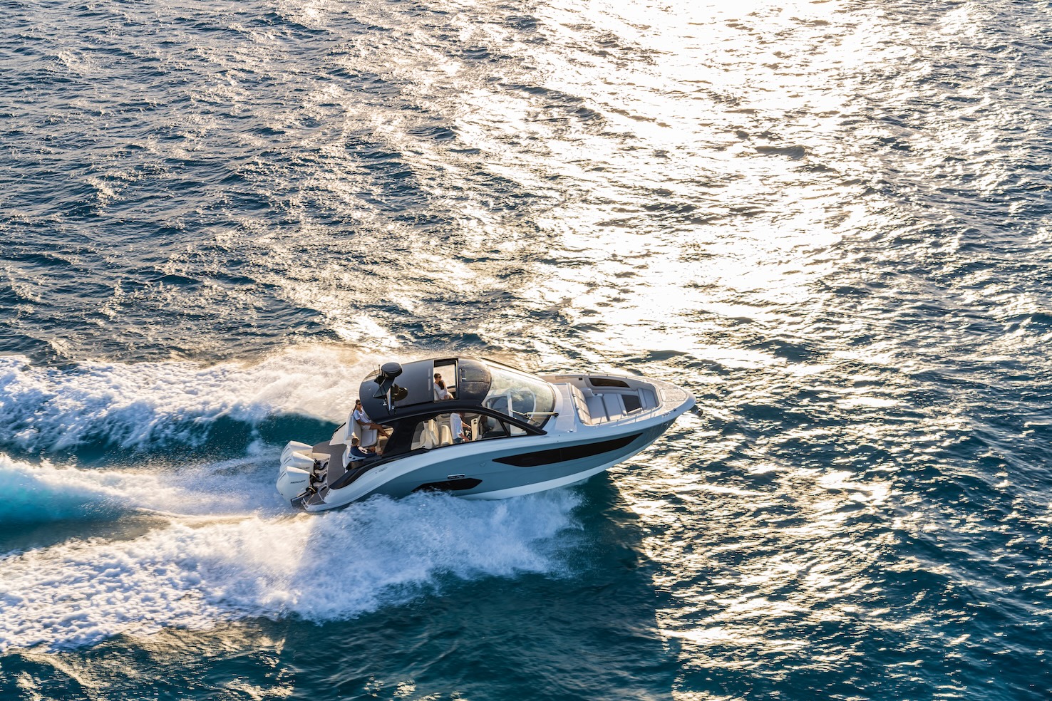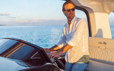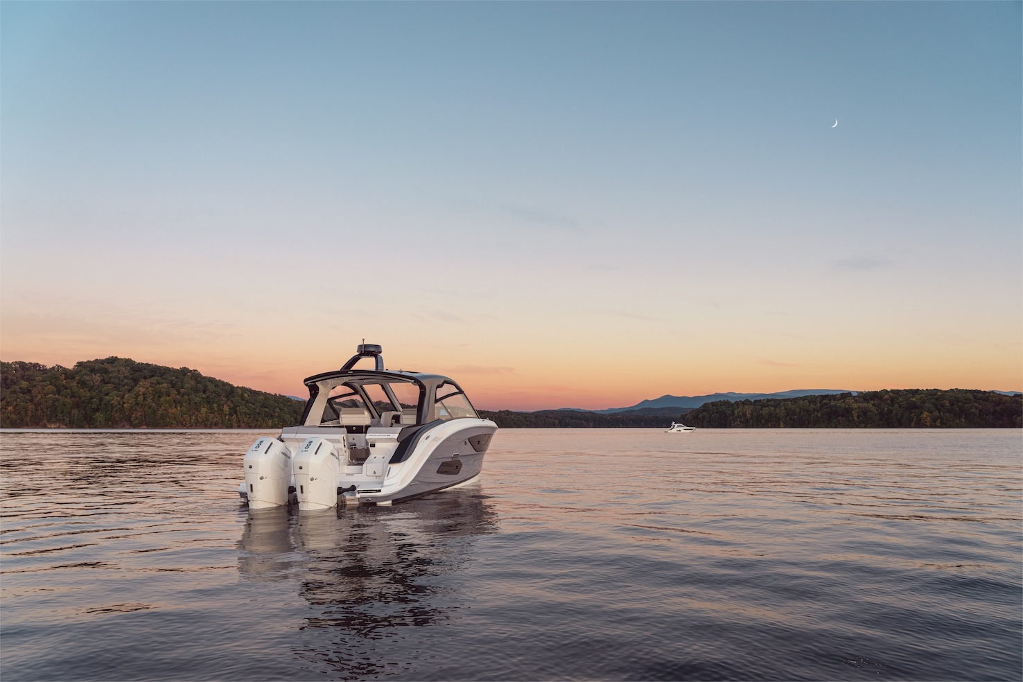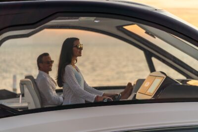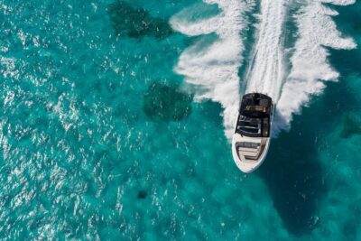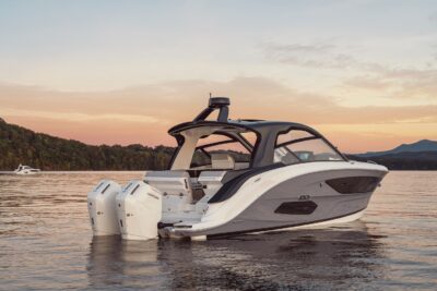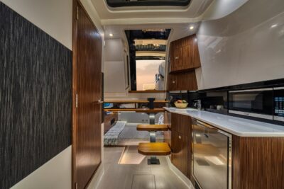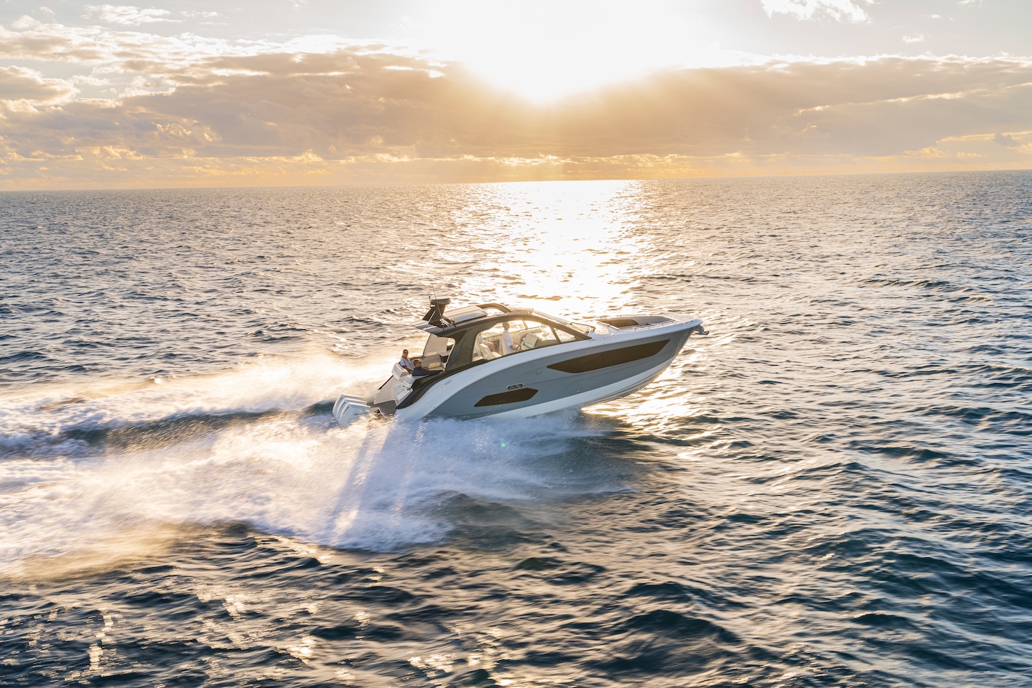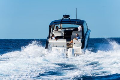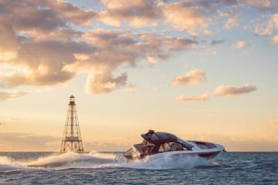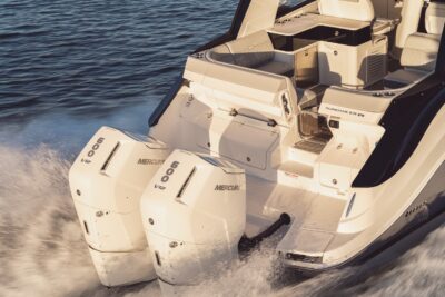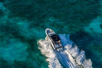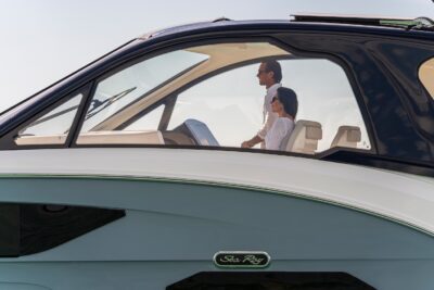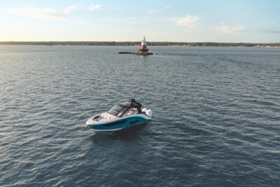 Przedstawiamy największy model z linii Sundancer amerykańskiej stoczni Sea Ray. Model ten, podobnie jak jego mniejszy brat SR320, charakteryzuje się nowatorskim zaprojektowaniem przestrzeni dziobowej. Dzięki przejściu na dziób usytuowanemu na portburcie, zamiast klasycznych półpokładów, zyskujemy przede wszystkim bardzo dużo miejsca w kokpicie, gdyż cała szerokość łodzi wykorzystana jest wówczas maksymalnie. Bardzo wygodne trzy leżanki dziobowe to znak rozpoznawczy linii Sundancer. Wszystkie przestrzenie głównego pokładu są na tym samym poziomie co znacznie ułatwia komunikację. Przestronny kokpit z aneksem kuchennym, leżankami i hardtopem w połączeniu z dziobem tworzą jedną z najatrakcyjniejszych przestrzeni życiowych spośród wszystkich łodzi tej klasy na światowym rynku. Pod pokładem znajdują się dwie przestronne kabiny przekształcane w wygodne sypialnie oraz obszerna łazienka z osobnym prysznicem.