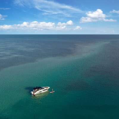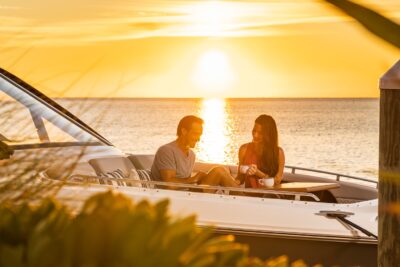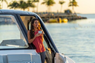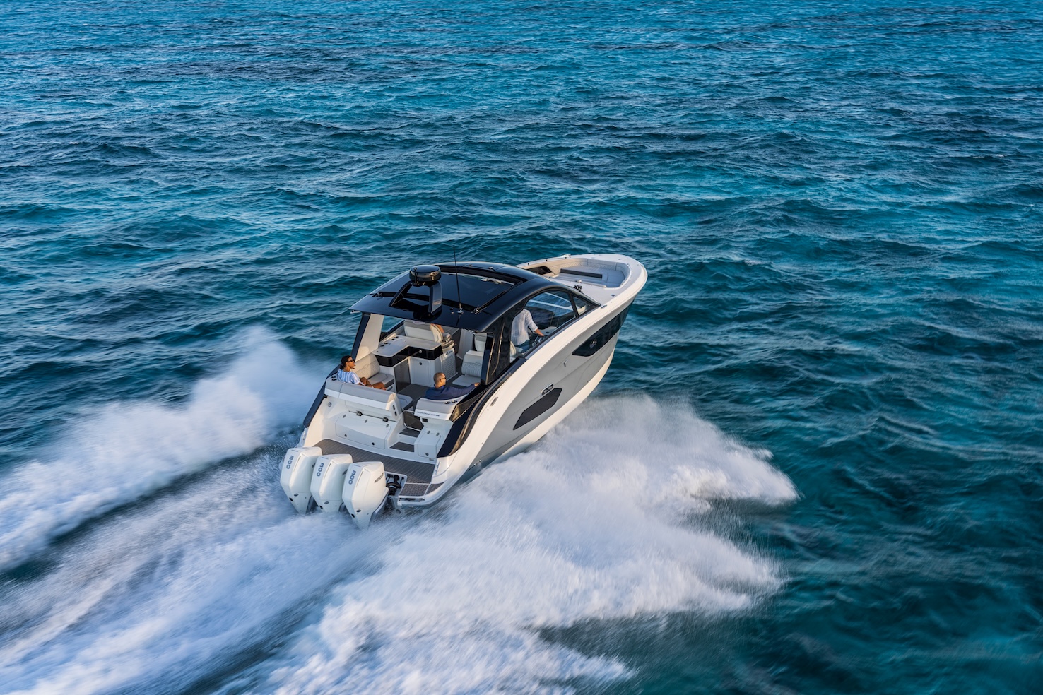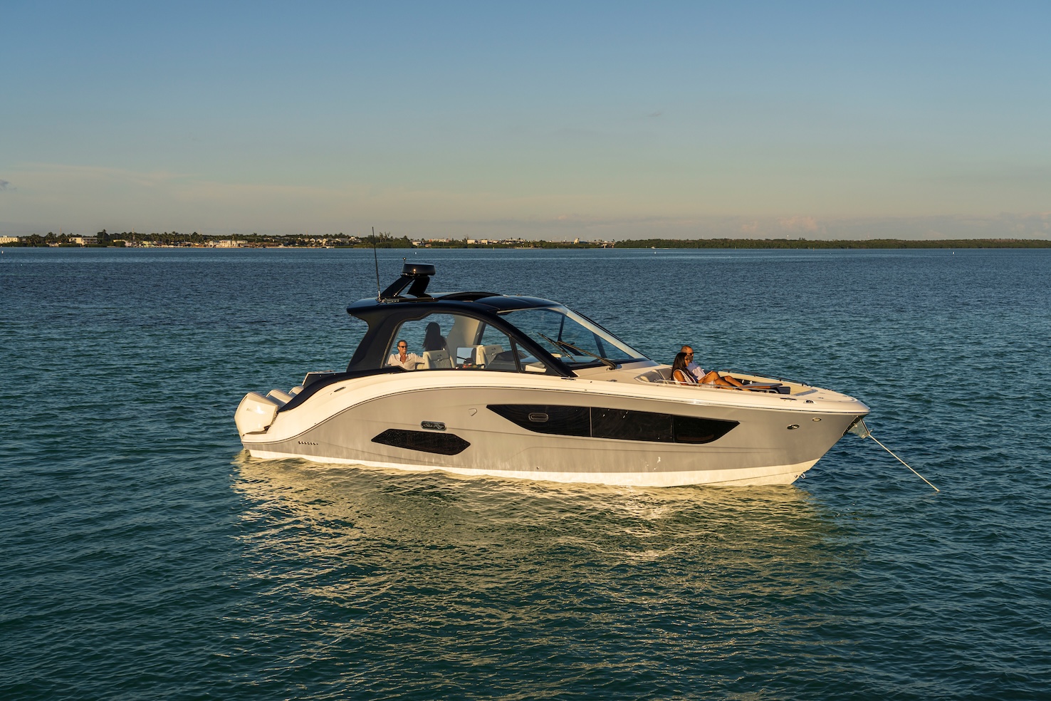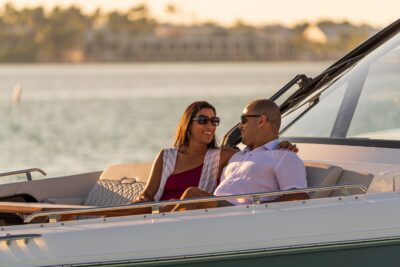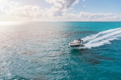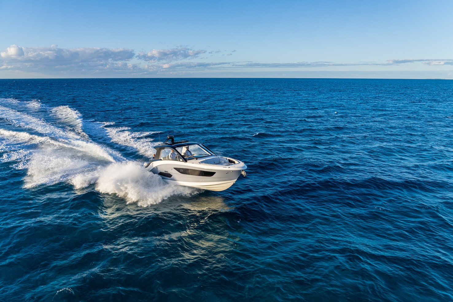 Przedstawiamy największy model z linii Sundancer amerykańskiej stoczni Sea Ray. Model ten, podobnie jak jego mniejszy brat SR320, charakteryzuje się nowatorskim zaprojektowaniem przestrzeni dziobowej. Dzięki przejściu na dziób usytuowanemu na portburcie, zamiast klasycznych półpokładów, zyskujemy przede wszystkim bardzo dużo miejsca w kokpicie, gdyż cała szerokość łodzi wykorzystana jest wówczas maksymalnie. Bardzo wygodne trzy leżanki dziobowe to znak rozpoznawczy linii Sundancer. Wszystkie przestrzenie głównego pokładu są na tym samym poziomie co znacznie ułatwia komunikację. Przestronny kokpit z aneksem kuchennym, leżankami i hardtopem w połączeniu z dziobem tworzą jedną z najatrakcyjniejszych przestrzeni życiowych spośród wszystkich łodzi tej klasy na światowym rynku. Pod pokładem znajdują się dwie przestronne kabiny przekształcane w wygodne sypialnie oraz obszerna łazienka z osobnym prysznicem.