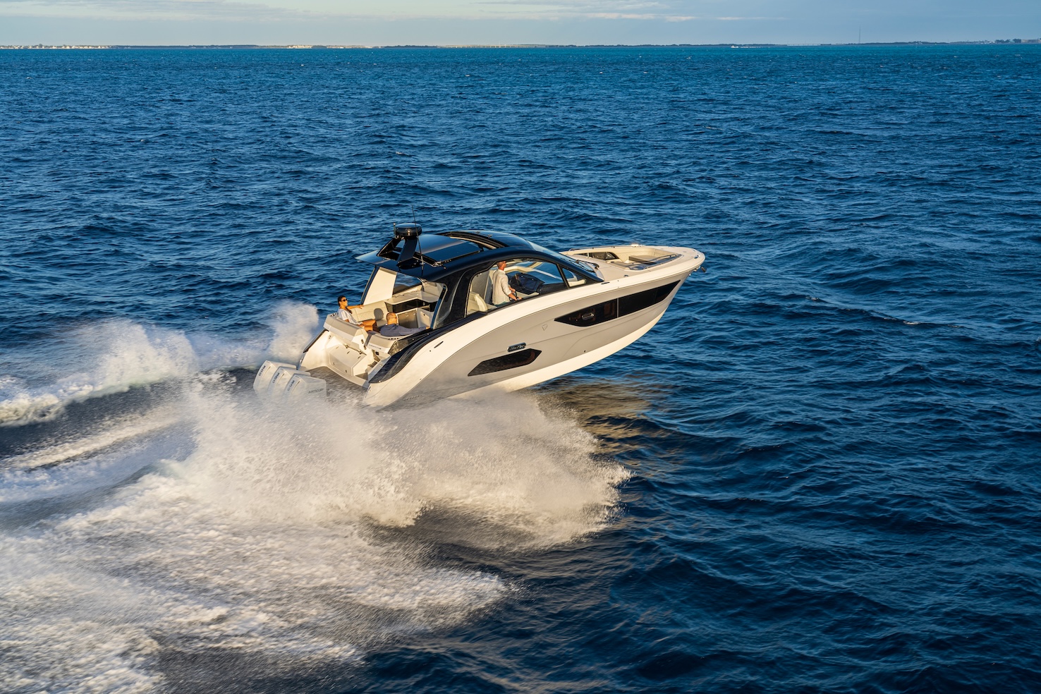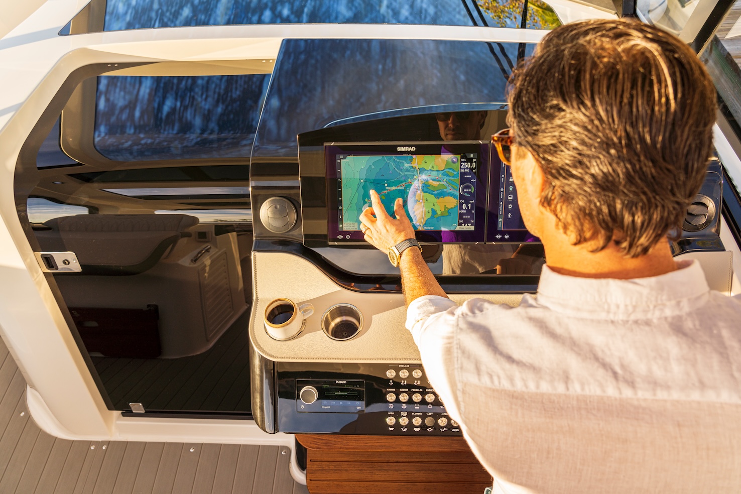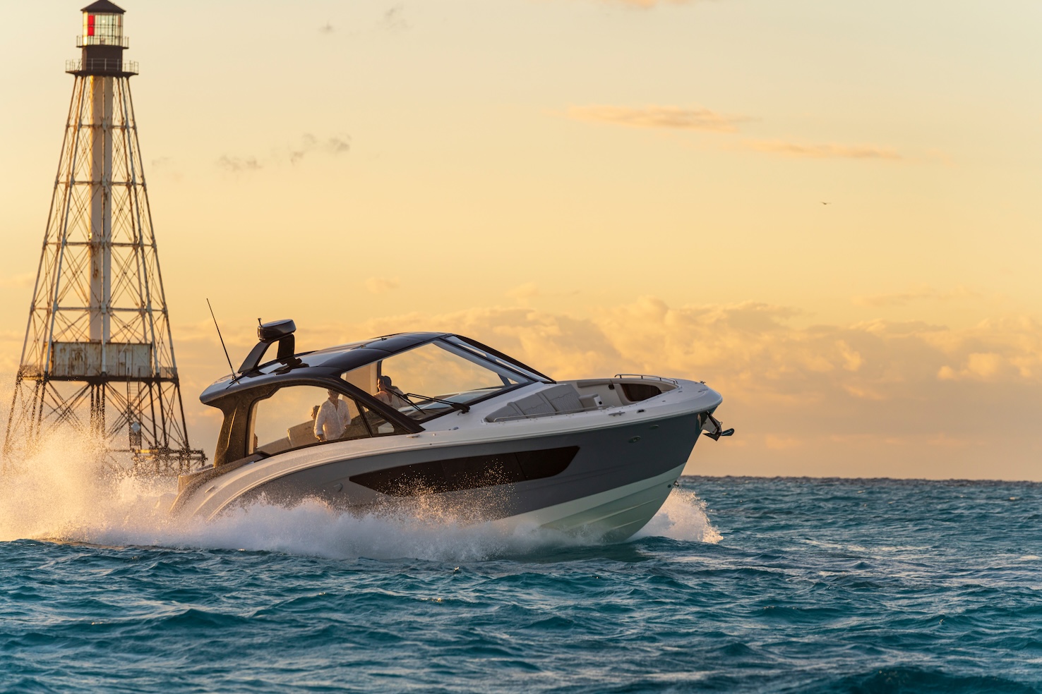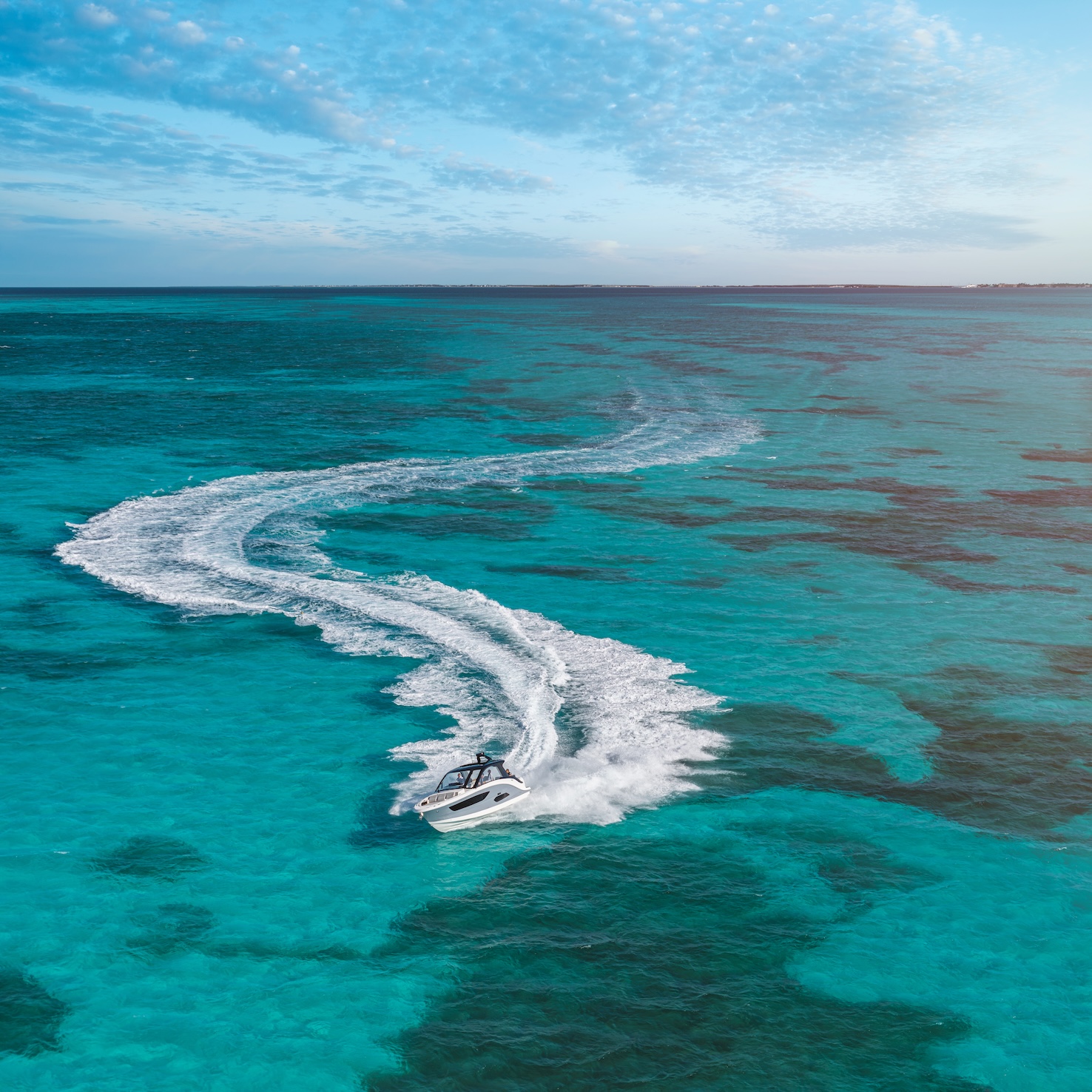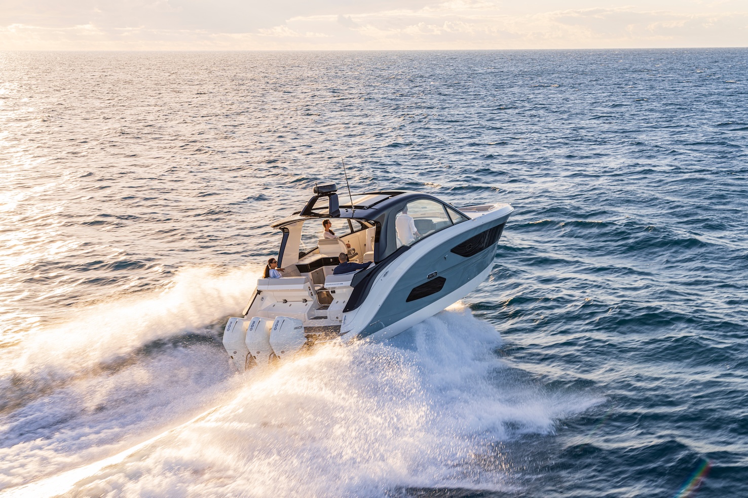 Przedstawiamy największy model z linii Sundancer amerykańskiej stoczni Sea Ray. Model ten, podobnie jak jego mniejszy brat SR320, charakteryzuje się nowatorskim zaprojektowaniem przestrzeni dziobowej. Dzięki przejściu na dziób usytuowanemu na portburcie, zamiast klasycznych półpokładów, zyskujemy przede wszystkim bardzo dużo miejsca w kokpicie, gdyż cała szerokość łodzi wykorzystana jest wówczas maksymalnie. Bardzo wygodne trzy leżanki dziobowe to znak rozpoznawczy linii Sundancer. Wszystkie przestrzenie głównego pokładu są na tym samym poziomie co znacznie ułatwia komunikację. Przestronny kokpit z aneksem kuchennym, leżankami i hardtopem w połączeniu z dziobem tworzą jedną z najatrakcyjniejszych przestrzeni życiowych spośród wszystkich łodzi tej klasy na światowym rynku. Pod pokładem znajdują się dwie przestronne kabiny przekształcane w wygodne sypialnie oraz obszerna łazienka z osobnym prysznicem.